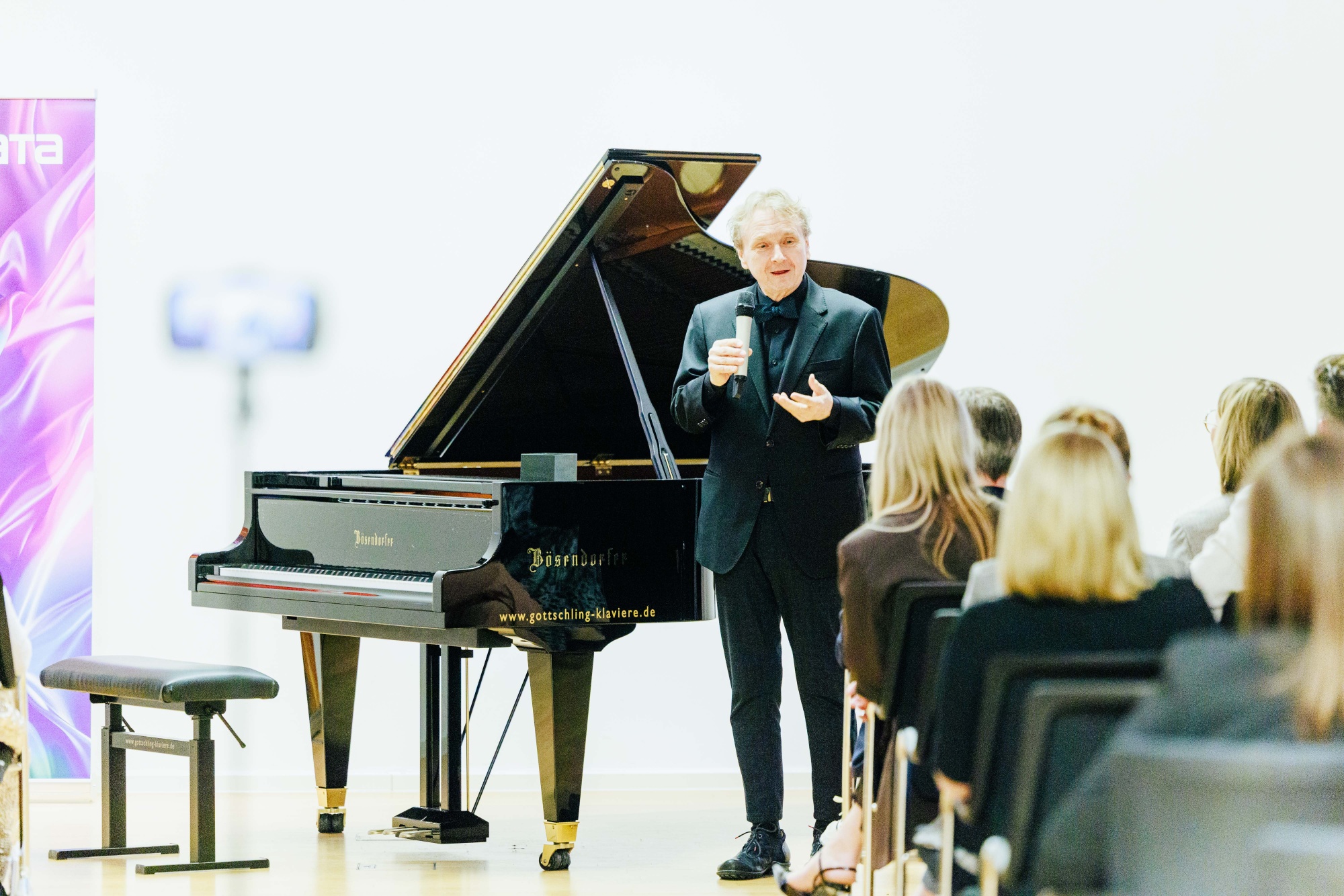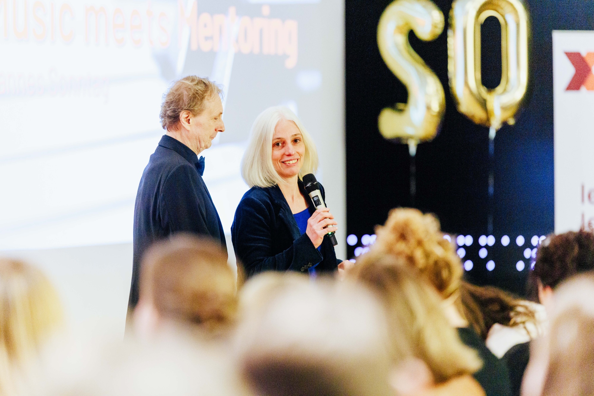 Auf Einladung der CrossMentoring OWL powered by X3Y GmbH sprach Bettina Nolting über die Anfänge der Mentorenschaft und schlug hierzu die Brücke durch 2000 Jahre Kulturgeschichte. Unter dem Titel „Music meets Mentoring. Spielräume und Inspiration“ betonte sie die Effektivität in der Verbindung zwischen ökonomischen wie philosophisch-kulturellen Themen. Diesem gab Hannes Sonntag am Flügel erinnerungswürdigen Nachhall: in Wort und Ton demonstrierte er Beispiele für Mentor-Mentee Beziehungen aus der Musikgeschichte. Biographisches, Musikalisches und Anekdoten – der Konzertpianist und Autor nahm die rund 300 Gäste mit auf eine Reise zu Chopin und Mozart, berichtete von persönlichen Erlebnissen und begeisterte die nach Bielefeld gereisten Zuhörer mit Manuel de Fallas Feuertanz.