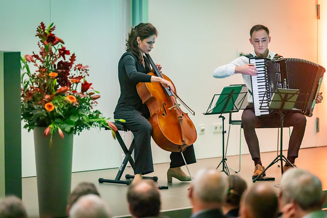 Musikalisch eingerahmt von den eindrucksvollen Darbietungen der Stipendiaten Emilia Mladenovic (Violoncello) und Roman Balatel (Akkordeon) fand die feierliche Urkundenübergabe statt – persönlich begleitet von Mitgliedern der Hochschulleitungen aller beteiligten Hochschulen.